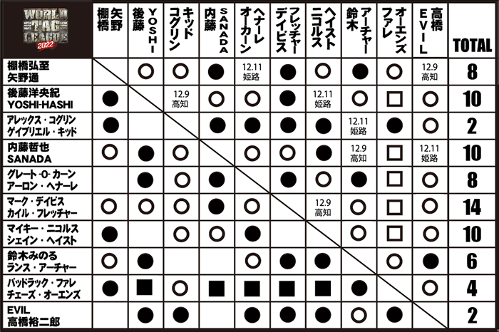 【5勝2敗=10点】後藤洋央紀 YOSHI-HASHI(13分36秒 片エビ固め)【3勝4敗=6点】×鈴木みのる ランス・アーチャー