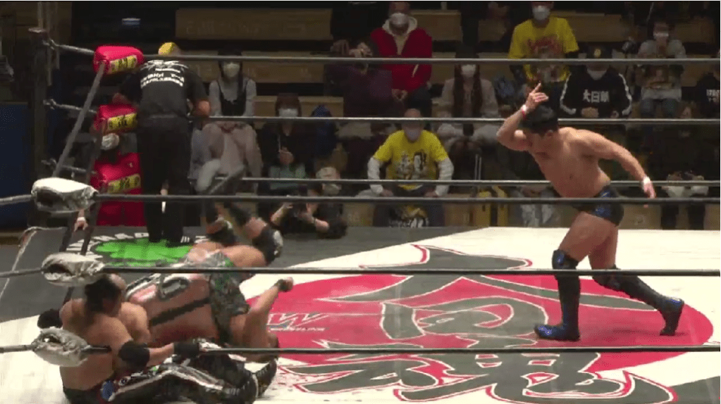 〇神谷英慶 ドリュー・パーカー 伊東優作(9分2秒 片エビ固め)×伊東竜二 ”黒天使”沼澤邪鬼 星野勘九郎
