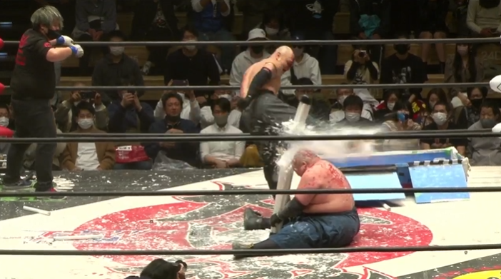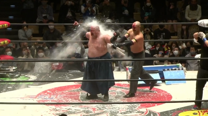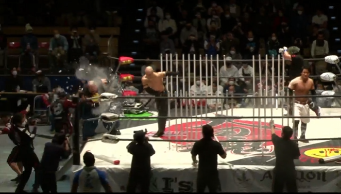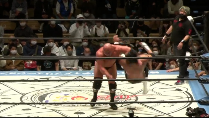 大門寺が後頭部ブラックレインを連発するが、岡林はカウント2でキックアウト、ツームストーンパイルドライバー狙いは岡林が切り返してラリアット、ゴーレムボムは大門寺がリバースしてスーパーマンパンチから突進は岡林がラリアットで迎撃し、飛びついた大門寺をパワーボムで叩きつけてからゴーレムボム、そしてゴーレムスプラッシュで3カウントを奪い王座を防衛に成功した。