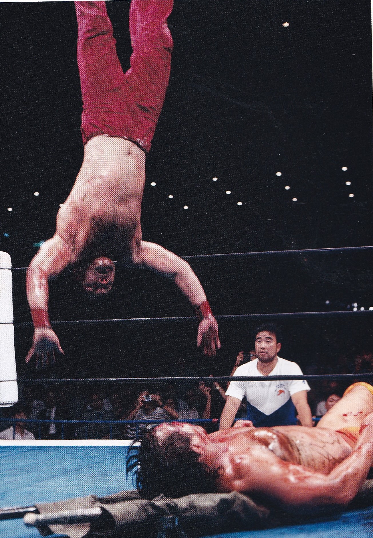 こうして新日本に定着することになった武藤は9月7日の大阪で越中詩郎ことサムライシローと対戦。この時はファンが日本におけるカブキ的なことを期待されていたせいもあって、ベビーフェースの試合をして期待外れに終わったものの、武藤も日本でムタでやることに抵抗を感じていたという。しかし14日の広島での馳浩戦では、場外で馳を大流血に追い込み、反則負けになっただけでなく、馳を担架の上へ寝かせてムーンサルトプレスでダメ押しするなど、WCW以上の極悪ぶりを見せる。