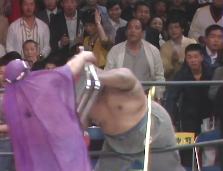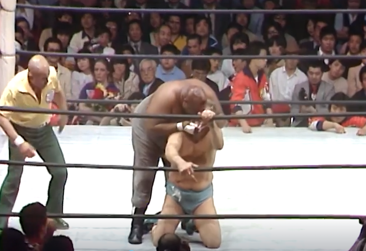 シークの凶器攻撃にブッチャーが懸命に耐えると、後楽園ホールの館内からはブッチャーコールが巻き起こり、これに応えたブッチャーは地獄突きや頭突きでやっと反撃し、シークの耳に噛みつく。これに怯んだシークにブッチャーが手刀を落とすと、再び地獄突きを浴びせ、頭突きからシークの眼に噛みつく。
