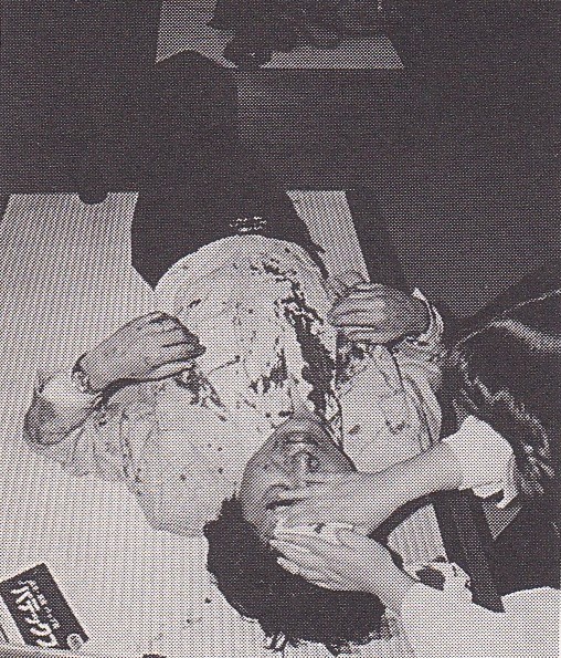 そこでブッチャーも割り込んで、セコンド勢も必死で制止する中、リングサイドレポートしていた松永二三男アナによって倉持アナがシークに襲われ流血したことが報告され、倉持アナが血だらけになった姿を見た観客らは凍り付いてしまったという。