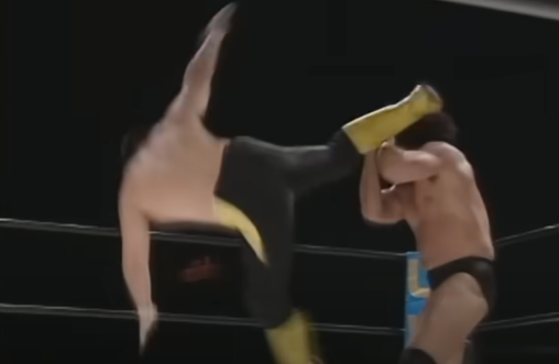 高山はジャンピングニーからジャーマンで投げるが、すぐ立った川田は顔面へフロントキックで返す。高山はニーリフトを浴びせるが、川田がエルボーの連打からデンジャラスバックドロップ、立った高山はビックブーツを連発で応戦する。
