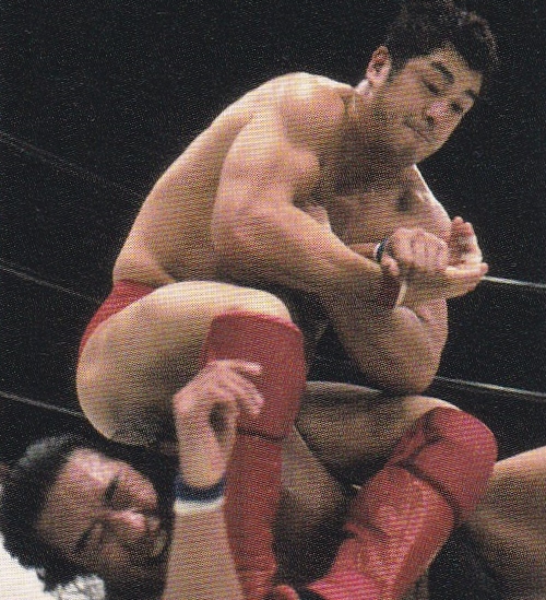 川田はデンジャラスバックドロップを狙うが、逃れた高山がスリーパーで捕らえ、川田は投げで逃れようとしても、高山は胴絞めスリーパーへ移行するが、川田はロープエスケープする。