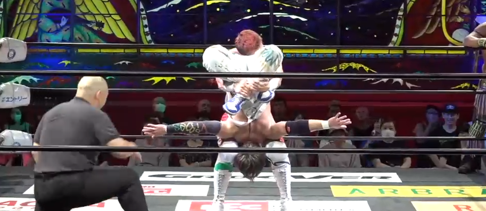 長時間捕まったYAMATOは近藤に代ろうとするが、タッチを横取りして出たTNRはコルタバを狙うKAMEIをにツームストーン式ジャベであるアカベで捕らえ、近藤への交代を拒否してジェイソンにLimitBOMBを狙うが、逃れたジェイソンはスピンキック、スタナーで反撃、そこで近藤がカットに入っても、TNRは拒否して連係も乱れると、NATURAL VIBESが反撃して近藤が捕まってしまう。