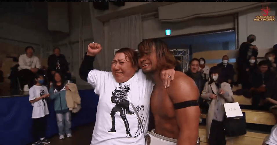試合後は王座奪取をアピールした豹は、女豹ファンの声援に感謝を示しつつ、マンテのアシストにも感謝を示してから、マンテが豹の腰にベルトを巻く。豹は中軽量の枠に収まる気がない、令和新世代6人にも宣戦布告の構えを見せつつ、歴代ブレイブ王者へのリスペクトをしつつも、現在の自分ならどこまでも上り詰め輝けるとし、マンテと共にシングル戦線の独占を宣言して、最後はウノドストレスからグラシャスで締めくくり、観客に握手するだけでなく応援に駆けつけてくれた母ともビックハグとなった。