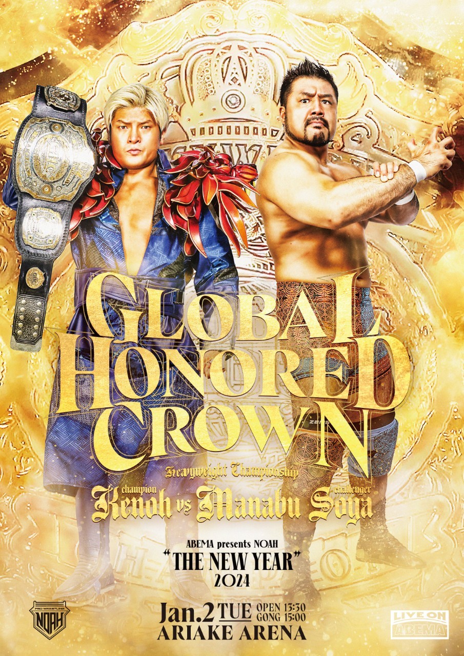 NOAH有明コロシアムのセミは2024年度最初のGHCヘビー級選手権、王者の拳王に征矢が挑戦、拳王は金剛カラーである真紅のコスチュームで登場した。