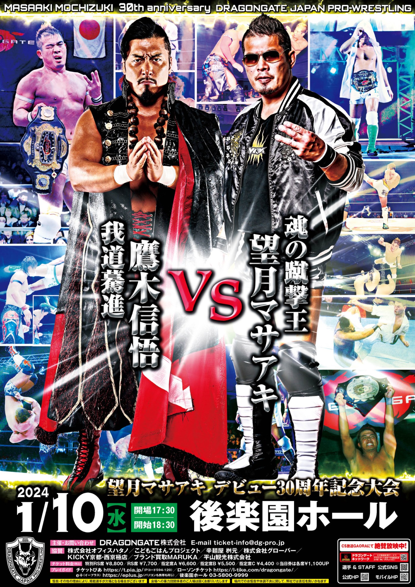 2024年度最初のDRAGON GATE後楽園大会は望月マサアキのデビュー30周年記念大会として行われ。記念試合相手にはDRAGON GATEでは何度も対戦した新日本プロレスの鷹木信悟を迎え対戦、今日のマサアキは「傷だらけの栄光」で登場してセコンドにはジュニアを始めとしてM3Kが入り、鷹木は専属付き人である富永を従えて登場した。