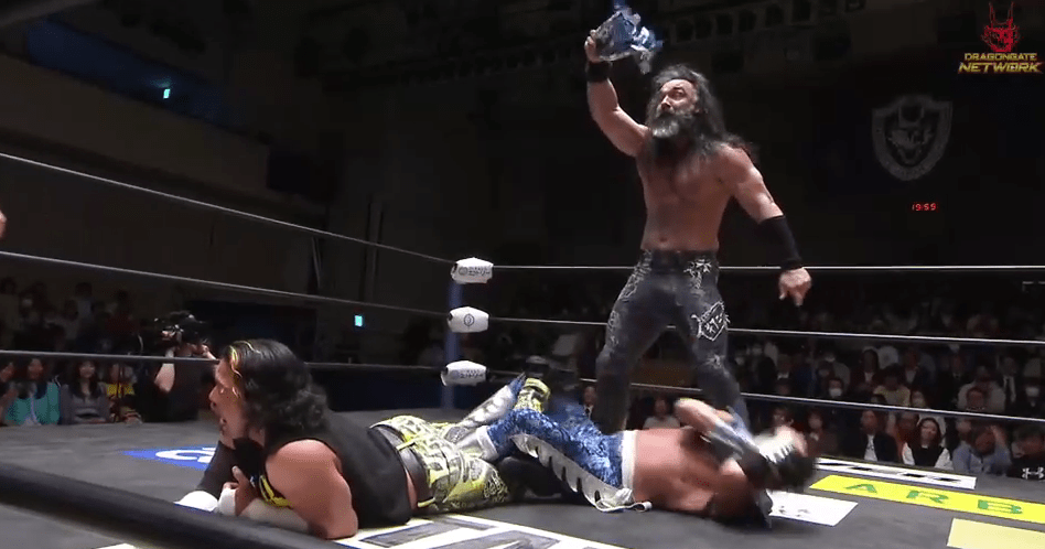 そこで豹が駆けつけて阻止すると、ハサミを奪ったKAMEIがジェイソンの髪を切り、これには両軍が割って入って乱闘となる。