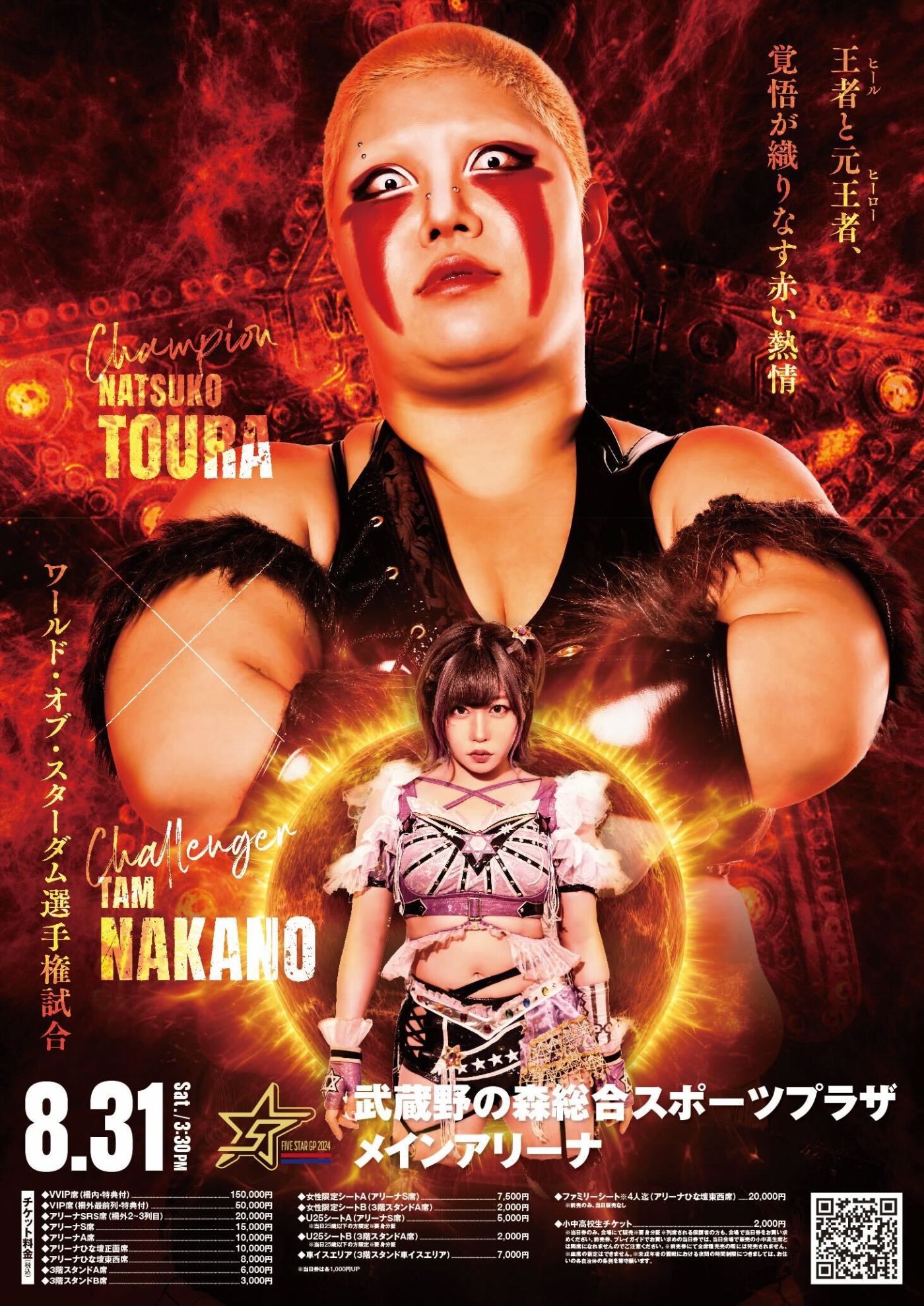 ナツコはキャノンボールからスワントーンボムは自爆すると、中野たむは突進するナツコにトラースキックで両者ダウンとなり、ナツコはラリアットからデスバレーボムは、逃れた中野たむがタイガースープレックスホールドを決める。