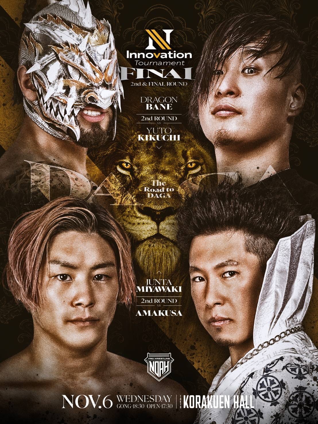 NOAH後楽園大会の第1、2、セミではGHCジュニアヘビー級王者ダガの挑戦者を決める『N Innovation Tournament』準決勝、決勝が行われ、第1試合では悠斗がベインと対戦、両者はハンドスプリングを狙うが、ベインがティヘラで悠斗を場外へ追い出し、ノータッチのトペ・コンヒーロを命中させる。