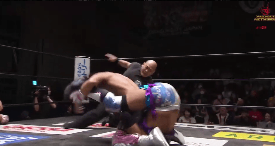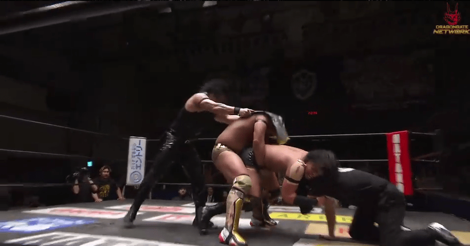 代わったススムが良弥、菊田にジャンボの勝ちを決め、ダイヤにはKagetoraとの連係で攻撃。ダイヤはハルクにシザースや619で反撃し、菊田とダイヤはススムとKagetoraを同士討ちさせてから良弥がミサイルキック。連係でススムを蹂躙し、マシーン・Jもセントーンで加勢する。