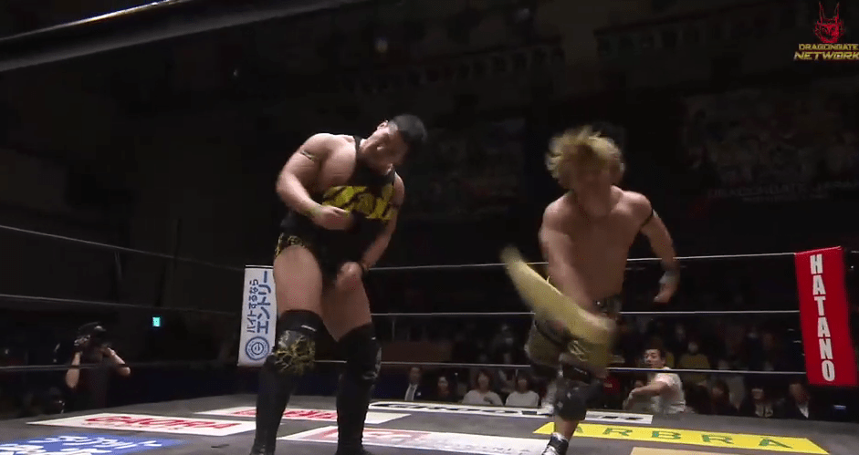 DRAGON GATE後楽園2連戦の2日目のメインは、1月25日の横浜武道館で行われるオープン・ザ・ドリームゲート、&トライアングル・ゲート前哨戦が行われ、YAMATO&ハルク&ススム&KagetoraのPARADOXが、マシーンJを加えた菊田&ダイヤ&良弥のDCourage連合軍と対戦、試合はPARADOXがダイヤを捕らえて試合をリードするが、マシーン・JがYAMATOに襲い掛かると、その隙にダイヤから菊田に代わり、YAMATOと逆水平のラリーを繰り広げると、菊田がカウンターエルボーからパイルドライバーで突き刺し、YAMATOは前夜のシュン戦で痛めた首に大ダメージを負ってしまい、マシーン・JとDCourage連合軍がシュン戦でのダメージが残るYAMATOを捕らえ、先走るマシーン・JがYAMATOにマウントエルボーを浴びせる。