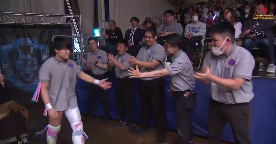 挑戦者の柳内は、元同僚の後楽園ホールスタッフに激励され入場。