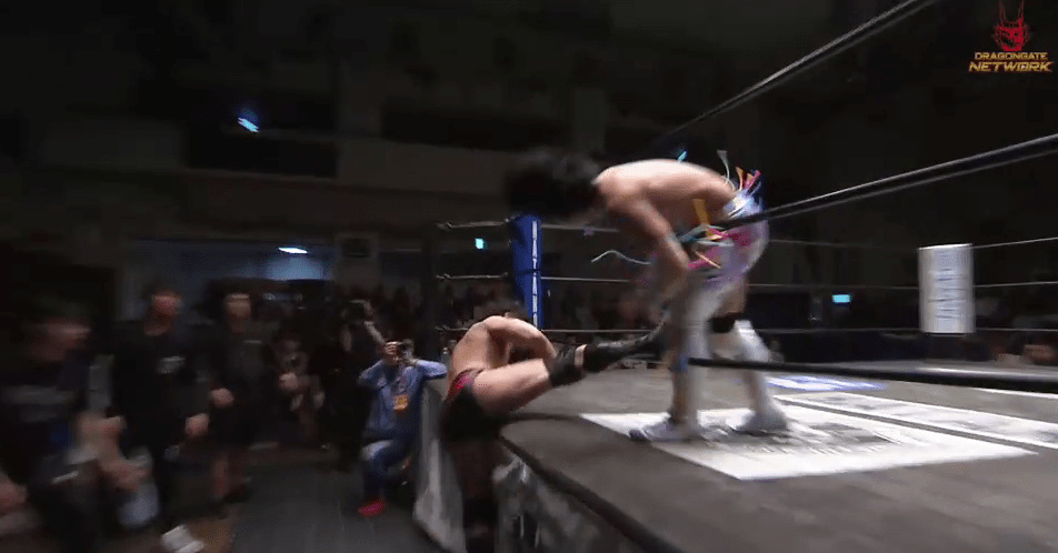 DRAGON GATE後楽園大会の第4試合では吉岡がギアニーと対戦するが、後入場のギアニーが奇襲で試合開始。いきなり場外戦を仕掛けると、ブレーンクローで吉岡を捕らえ客席へ叩きつけるなどで圧倒する。