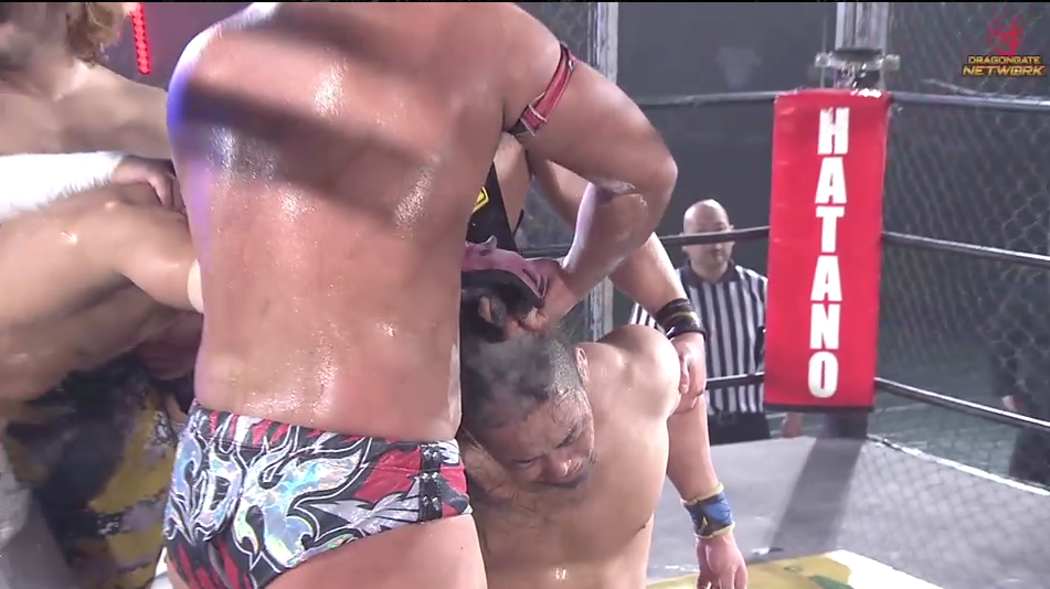 シュンが吉岡をトラッシュ缶でフルスイングすれば、菊田がシュンにボックス攻撃からMDK。シュンをトラッシュ缶に突っ込ませてから尻爆弾を浴びせてから、箕浦が菊田を金網へ槍投げを敢行する。吉岡が箕浦にリーブロックからエスケープを試みるも、場外のISHINが吉岡にパウダー撒布してから、箕浦が吉岡をパウダーを巻いてから踏み台にして旗を奪取でエスケープに成功する。