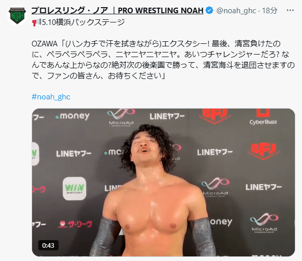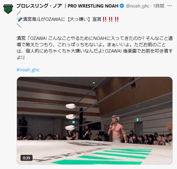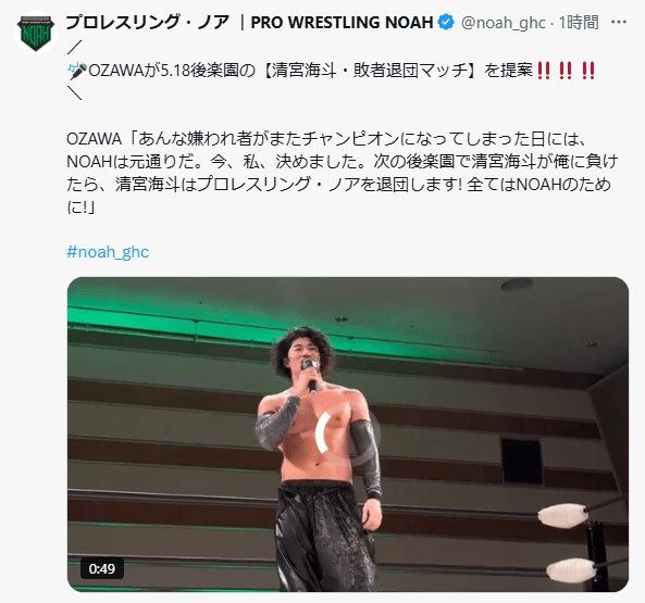 大嫌いと公言されたOZAWAが怒り、清宮に敗者NOAH退団マッチを宣言!1月10日の主なニュース
