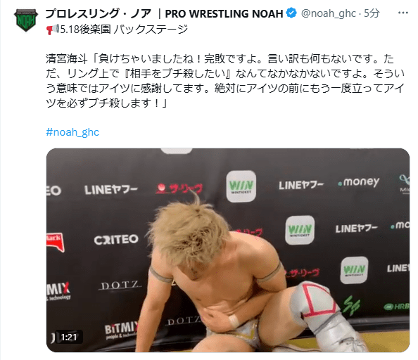 試合内容には清宮も荒れた試合を得意としていることから、OZAWAを上回る自信はあり、後半からは狂気も宿っていた。だがOZAWAは序盤こそ、いつもと違う清宮に戸惑っていたものの、軌道修正し、清宮がいくら狂気を宿らせても冷静さは保っていた、それを考えるとOZAWAは清宮の持つ狂気すら飲み込んで勝ったということだろう。