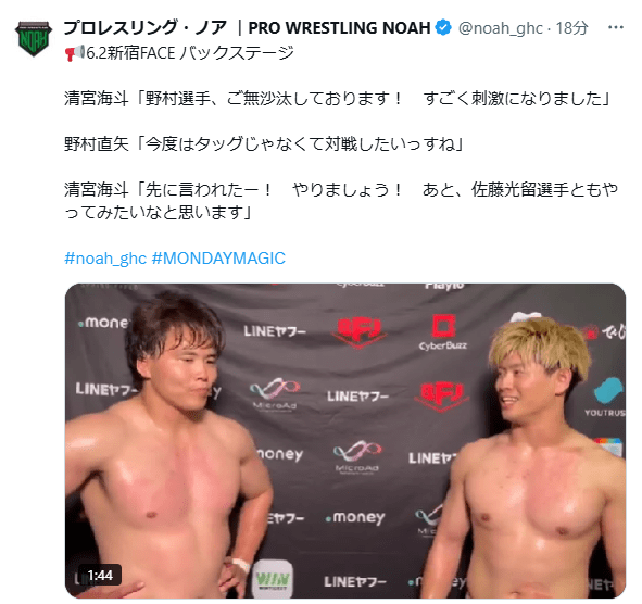 6月2日 NOAH「MONDAY MAGIC PRIME TIME season Ep2」新宿FACE