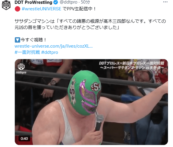 試合後、髙木はYOHを称え「対抗戦の勝者はお前だ。だがDDTに勝ったわけじゃない。真のスーパースターになれ」とエール。ササダンゴは「10年前の元凶である髙木の首を取ってくれた」と感謝する。