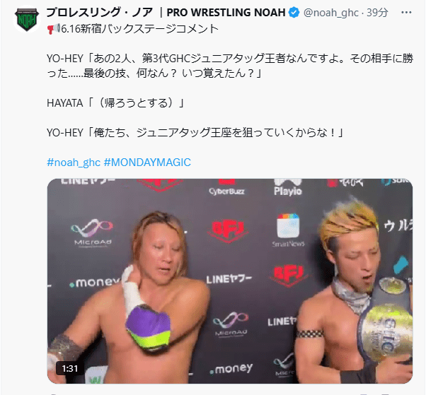 セミファイナルではYO-HEY&HAYATAの金髪夫婦vs元GHCジュニアタッグ王者組である日高&藤田の相方タッグとの対戦が実現する。