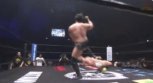 シュンは花道へYAMATOを連行し、ブラスターを狙うが、YAMATOがリバースしてラリアットを狙うと、切り返したシュンはブラスターを決め、YAMATOを花道に叩きつける。