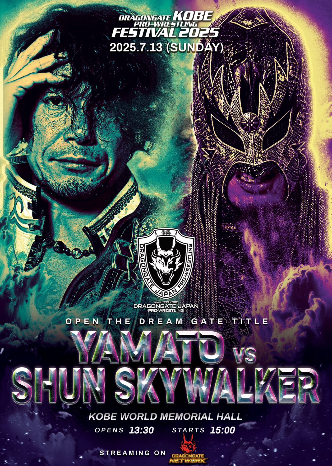 DRAGON GATE年に1度の地元でのビックマッチ、神戸ワールド記念ホール大会が開催され、メインはYAMATOの保持するオープン・ザ・ドリームゲートにシュンが挑戦、シュンはこの一戦では敗れたらDRAGON GATE退団をかけて選手権に臨み、挑戦者のシュンはMASQUERADE時代のマスクで登場すれえば、YAMATOは入場中に大の字に寝転がってからリングインした。。