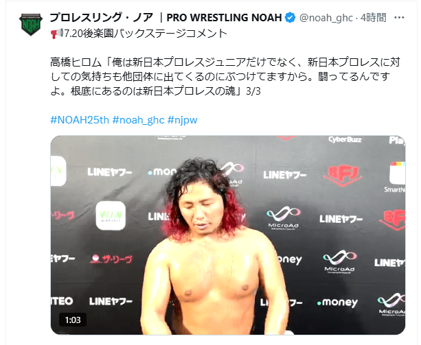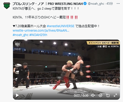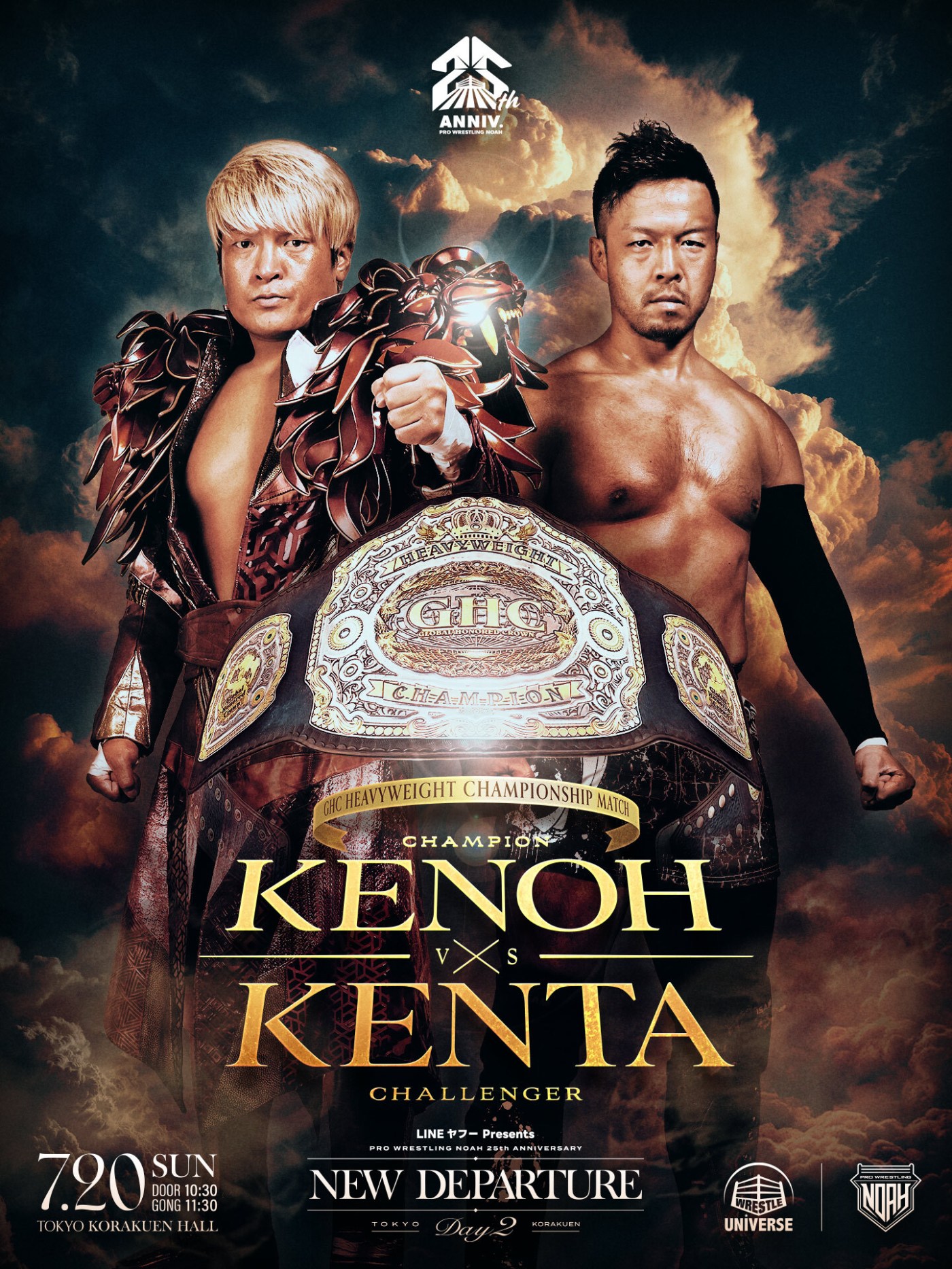 25周年目を迎えたNOAHだが、主役はOZAWAや拳王ではなく、カリスマとしてNOAHを支えてきたKENTAが主役に躍り出た。KENTAが生え抜きと言っても、途中からWWE、新日本プロレスへと渡り再びNOAHへ戻ってきた出戻り、だが今のKENTAは外へ出ることで、新たな経験値を積んで、NOAHに戻ってきたシン・KENTAでそのシンKENTAがNOAHの舵取りをすることになった。そして挑戦者に向かえるのは丸藤正道、丸藤もNOAHに残ることで団体を支えてきたが、いろんな選手とも渡り合って、経験も積んて来て、ベテランになってもなお天才的な閃きを見せている。その二人が俺達のNOAHを今の世代に見せることが出来るか…