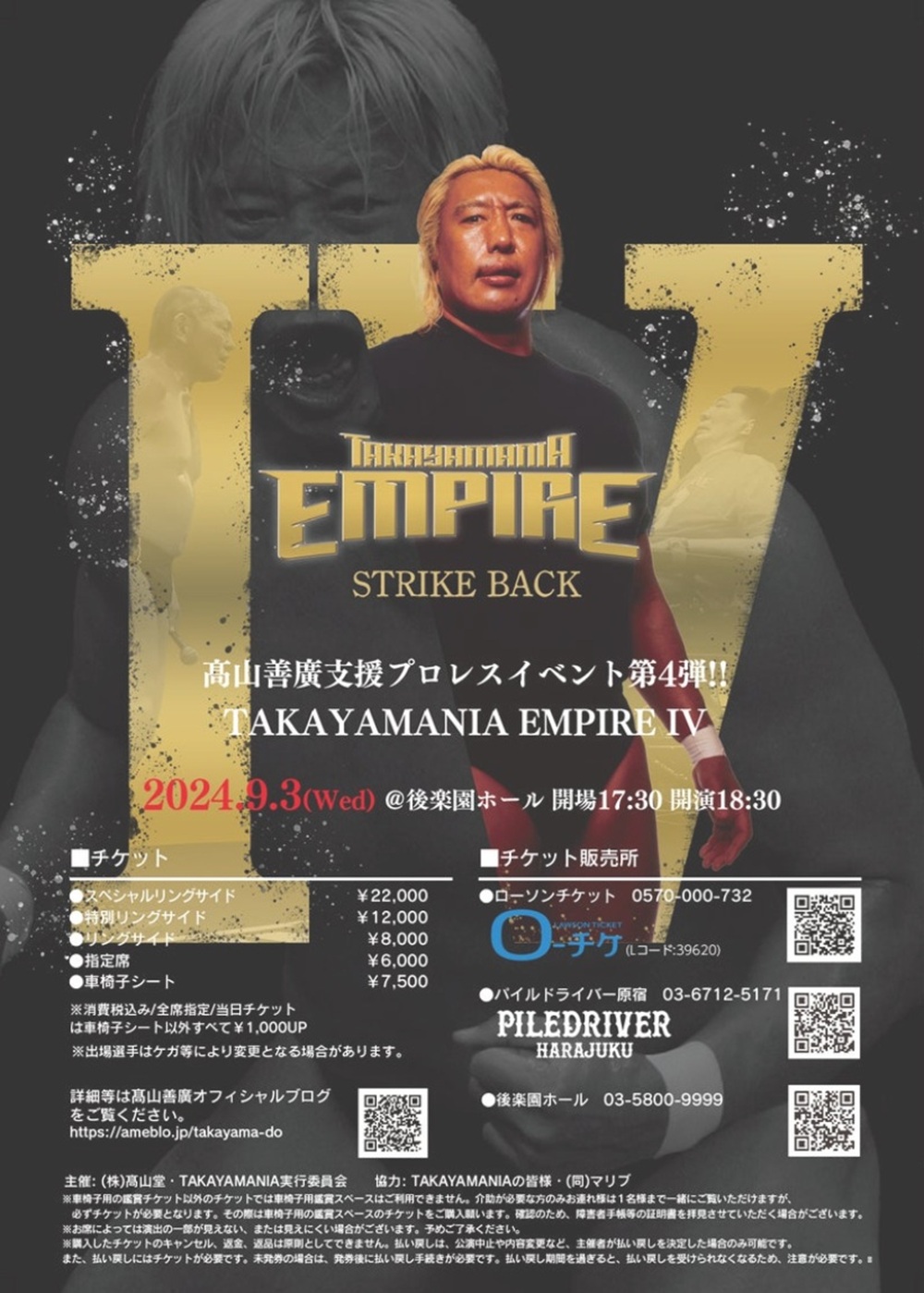 9月3日 TAKAYAMANIA EMPIRE Ⅳ 後楽園ホール
