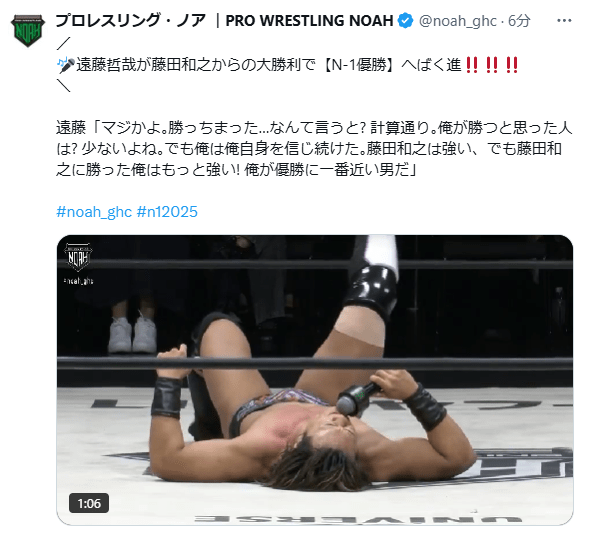 <第6試合 N-1 VICTORY 2025 Bブロック公式戦 30分1本勝負>