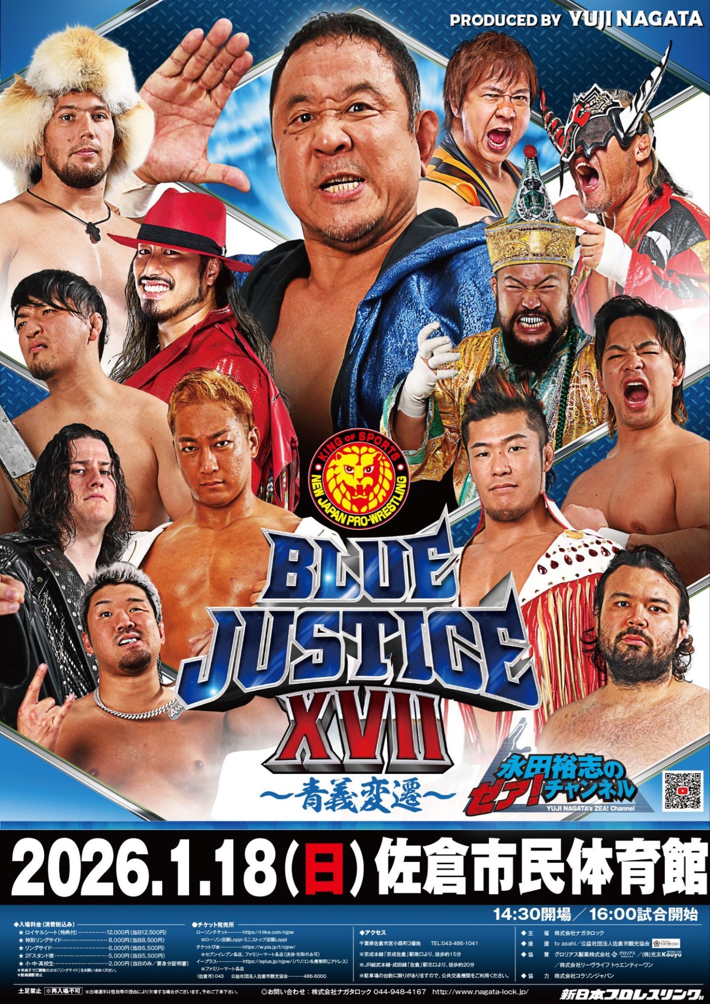 1月18日 新日本プロレス「永田裕志 Produce Blue Justice XVII ~青義変遷~」千葉・佐倉市民体育館 1693人