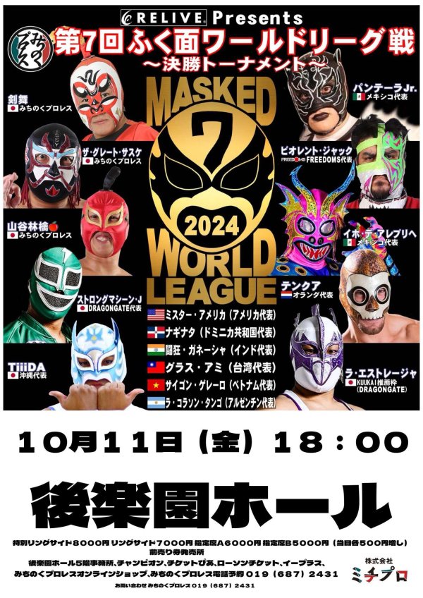10月11日 みちのくプロレス「第7回ふく面ワールドリーグ戦」後楽園ホール 750人((試合内容は実況ポストよ... 続きを読む →
