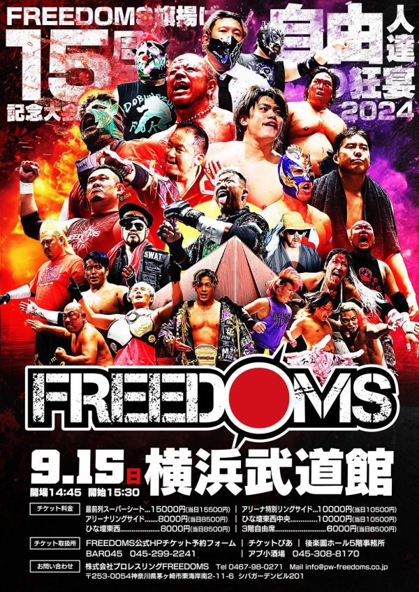9月15日 FREEDOMS「FREEDOMS旗揚げ15周年記念大会~自由人達の狂宴~」神奈川・横浜武道館(試... 続きを読む →